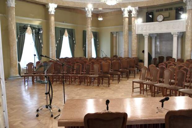 Здание было отреставрировано. В интерьерах сохранилась прекрасная декоративная отделка: росписи потолков, барельефы, колонны из искусственного мрамора. Здесь проходят встречи журналистов с политиками, бизнесменами, представителями творческой интеллигенции и шоу-бизнеса.