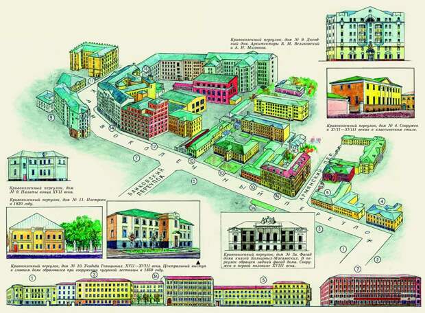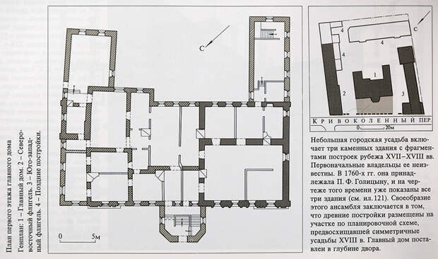 Наглядный рисунок, на котором видно расположение дома в Кривоколенном переулке, позаимствован из статьи "Переулки между улицами Мясницкая и Покровка" почётного члена Всероссийского общества охраны памятников истории и культуры В. Сорокина.