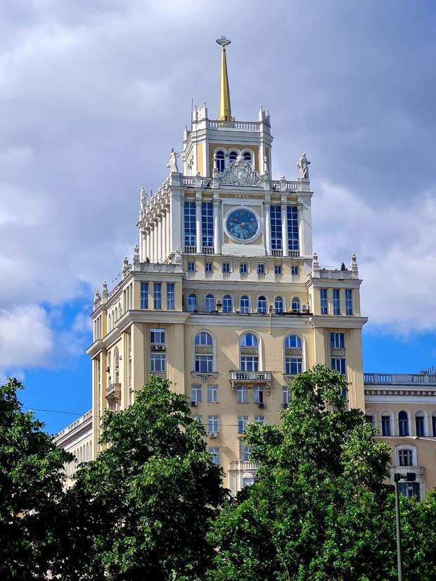 Ее архитектором был прославленный Дмитрий Чечулин – автор множества знаковых строений Москвы и 40 книг, главный архитектор столицы в 1945-1949 годах. «Изюминкой» здания в стиле сталинского классицизма стали гигантские часы, которые работают с середины прошлого века и до сих пор (хотя не обошлось без ремонта). Это что касается фасада.