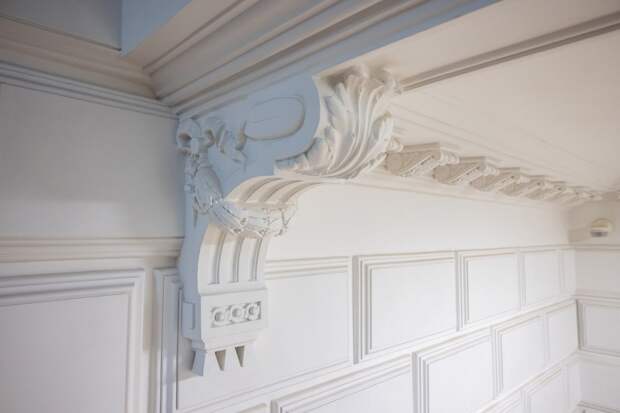 Паркет в помещениях второго этажа воссоздали по историческим образцам. В подвале и на первом этаже дома отреставрировали кирпичные своды Монье (так называют полукруглые лучковые своды). Кроме того, восстановили мозаичный пол первого этажа. В первоначальном виде воссозданы окна с мраморными и деревянными подоконниками, кирпичный фронтон на южном фасаде и утраченные части кровли.