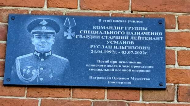 24 апреля 2024 года в МБОУ «СШ №4» г.Камышин Волгоградской области увековечили имя и подвиг гвардии старшего лейтенанта Руслана Ильгизовича Усманова. По случаю открытия мемориальной доски прошла торжественная линейка. Мероприятие объединило родных и близких, представителей администрации города, Камышинской Городской думы, ветеранского сообщества, преподавателей и учащихся школы. Присутствующие возложили цветы и почтили память Руслана минутой молчания.