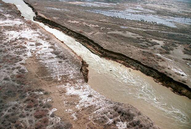 Но в 1960 годах Советы решили, что могут сделать степь цветущим и процветающим районом. Для этого они построили огромные ирригационные системы, включая каналы общей длинной 30 тысяч километров, 45 дамб, более 80 резервуаров – все это для того, чтобы орошать бесконечные хлопковые и пшеничные поля Казахстана и Узбекистана. Система оказалась небезупречной и неэффективной, в результате Амударья потеряла большую часть своих вод и не могла добраться до Аральского моря. Сегодня ее воды заканчиваются примерно в 110 километрах от моря.