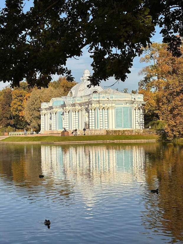 Павильон Грот стоит на берегу Большого пруда в царскосельском Екатерининском парке.