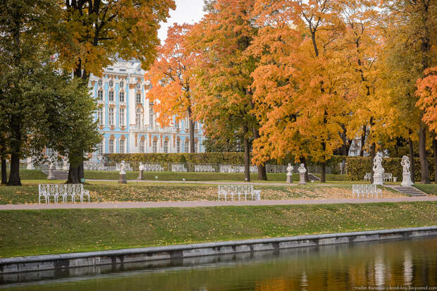 Город Пушкин под Санкт-Петербургом был основан в 1710 году как императорская загородная резиденция Царское Село, город с 1808 года. Включен в список памятников, охраняемых ЮНЕСКО. Сегодня прогуляемся по осеннему Царскому селу с помощью двух фотоблогеров