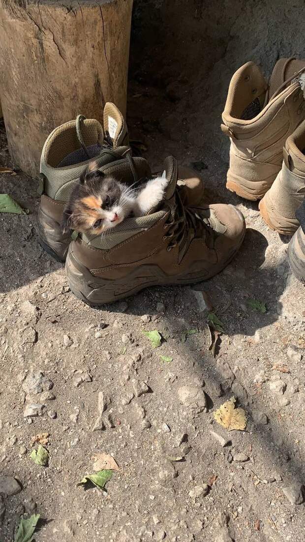 Солдаты готовились к подрыву поля, усеянного оставленными боеприпасами и минами «лепесток», он услышали мяуканье. Оказалось, что в одном из блиндажей спрятался котенок, который наотрез отказывался выходить.