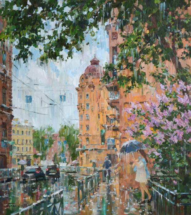 "Сиреневый рассвет на Фонтанке", художник - Юлия Киселёва