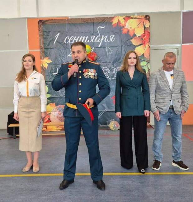 Антей, заместитель командира группы Аида СпН "Ахмат" МО РФ, с напутственной речью в школе.https://t.me/iamsniper/15344