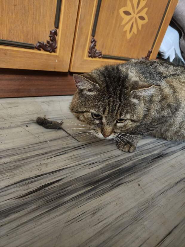 Трёхдневная засада его пушейшества. Хвалится трофеем.