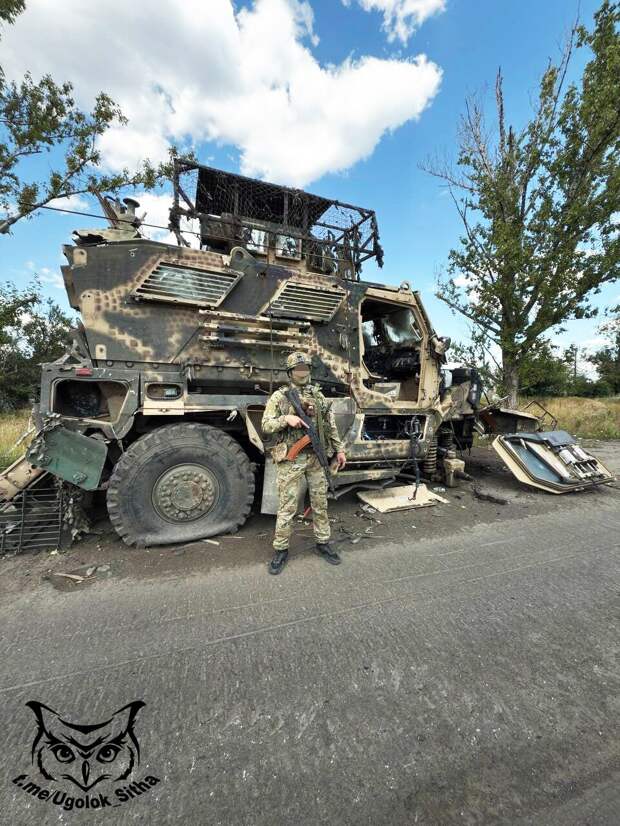 Уничтоженный украинский бронеавтомобиль "Козак".https://t.me/Ugolok_Sitha/27086