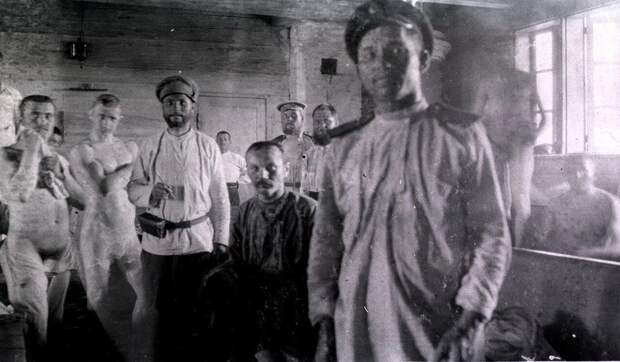 Солдатская баня на позиции, 1916 год.