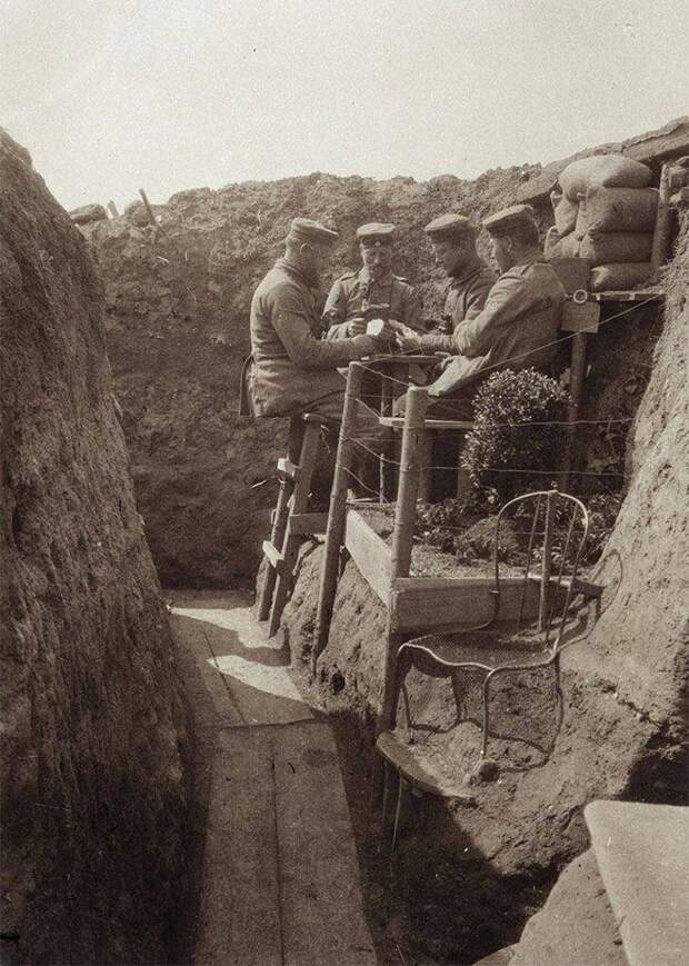Позиционный характер войны приводил к тому, что солдаты жили в одних и тех же траншеях годами.