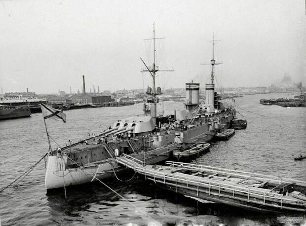 Линкор "Гангут"(типа "Севастополь") на Неве, июль 1914 года.