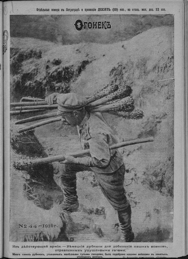 Из журнала Огонёк за 1916 год. На фото солдат Российской империи, с дубинками немцев.