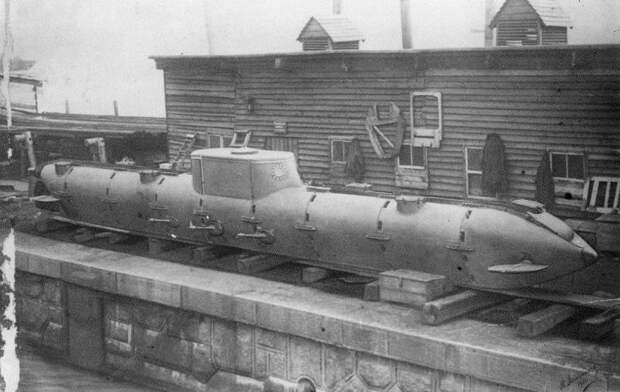 Подводная лодка «Матрос Пётр Кошка» на стапелях Кронштадтского порта, 1901 год.