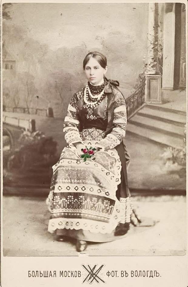 Женщина в русском костюме из Вологды. Июль 1883 годаФотография на паспарту. Софья Ивановна О 'Брайн. Из альбома с фотографиями купеческой семьи Костровых II половины ХІХ-начала ХХ вв.