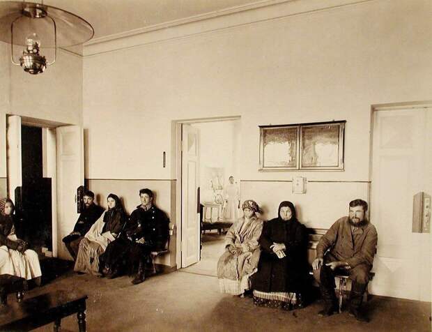 Очередь в ожидании приёма в амбулатории Могилевской Александринской общины сестер милосердия. Начало ХХ века.