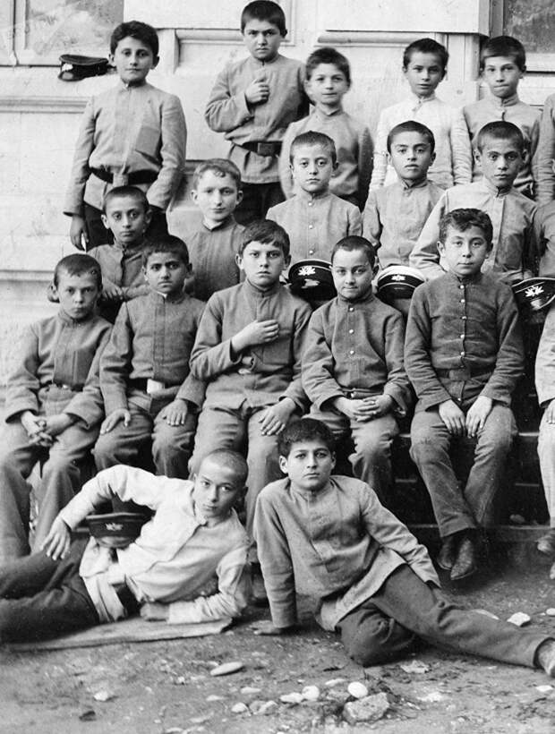 Будущий поэт Владимир Маяковский (3-й слева, 2-й ряд) среди учеников Кутаисской гимназии. Грузия, Российская империя, 1903 - 1905 годы