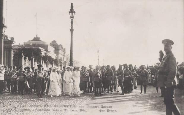 Отъезд Императорской семьи из Зимнего дворца после оглашения указа о вступлении России в войну. 1914 г.Автор: Карл Булла