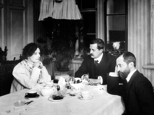 Поэтесса и писательница Зинаида Гиппиус, публицист, художественный и литературный критик Дмитрий Философов и писатель Дмитрий Мережковский, Санкт-Петербург. 1914 годФотография: Центральный государственный архив кинофотодокументов Санкт-Петербурга