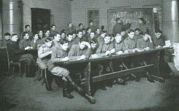 Школа прапорщиков.Курсанты школы на занятиях по математике. Петроград. 1914 год.