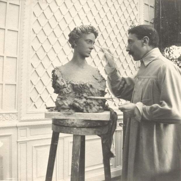 Скульптор Пьетро Каноника (Pietro Canonica, 1869-1959) за работой над созданием портрета Ирины Александровны Юсуповой. Март-апрель 1910 г.В 1910 году итальянский скульптор Пьетро Каноника (1869-1959) работал над созданием бюстов Николая II, Александры Федоровны и Цесаревича Алексея. Каноника был поражён простотой и добротой императорской четы. Также он с восхищением вспоминал увлечение Императрицы искусством.