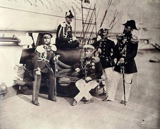 Великий князь Константин Николаевич с группой офицеров на палубе винтового фрегата «Генерал-адмирал». 1859 год.