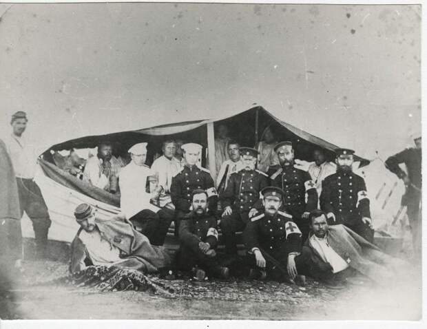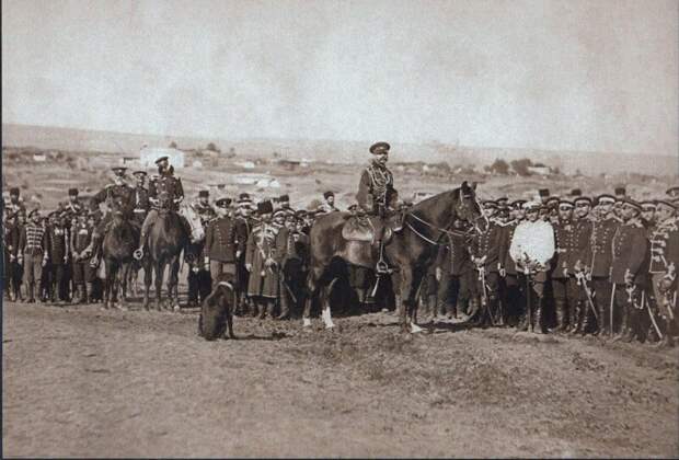 Русский император Александр II со своей охраной при осаде Плевны, 1877.