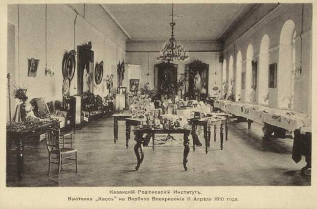 Казанский Родионовский Институт. Выставка «Кассь» на Вербное Воскресение 11 Апреля 1910 года, открытое письмо.