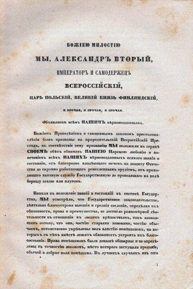 Манифест об отмене крепостного права в Российской империи, 3 марта 1861 года
