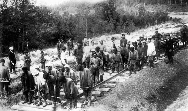 Самаро-Златоустовская железная дорога. Укладка пути на 724-й версте. Дата съемки: 1890 год