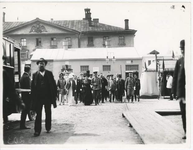 Международная пожарная выставка, В центре (в темном платье) – великая княгиня Мария Павловна идет под руку с младшим сыном – великим князем Андреем Владимировичем, Санкт-Петербург.В мае 1912 года открылась Международная выставка противопожарных мер и страхования от огня и VI Международный пожарный конгресс. Организатором обоих мероприятий выступило Императорское российское пожарное общество.