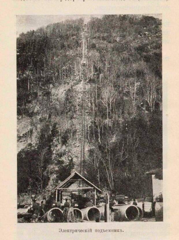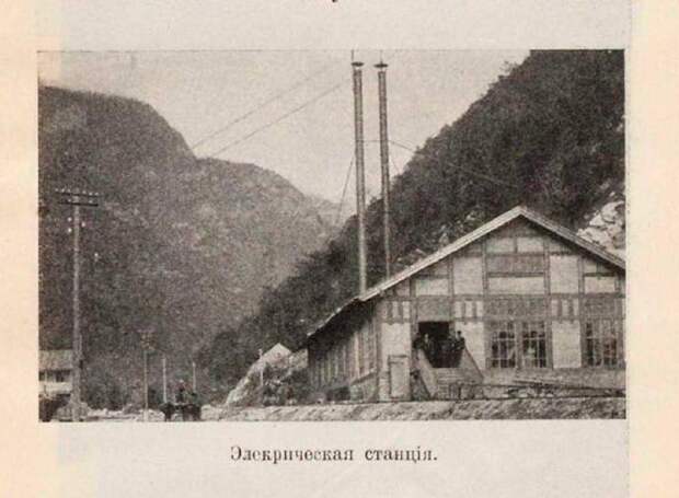В 1903 году в Гаграх был построен водопровод с электрической турбиной мощностью 800 сил. Водопровод протяжённостью 8 вёрст. На высоте 180 сажен. Собран был из 30-ти дюймовых железо-бетонных труб, весом по 40 пудов каждая. Для их подъёма в горы применялся электрический подъёмник, питавшийся от двух динамо машин, приводимых в действие стосильными локомобилями.