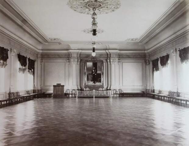 Актовый зал Киевского реального училища. На заднем плане портрет императора Николая II. Пол - не линолеум, а обычный паркет. Начало ХХ века.