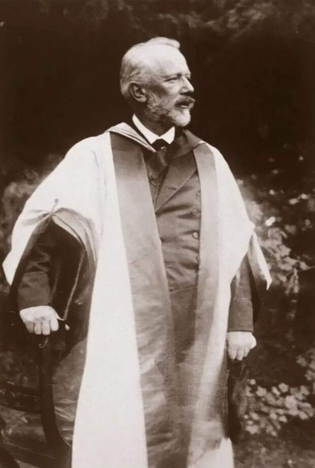 Петр Ильич Чайковский в мантии доктора музыки после присуждения ему этого звания Кембриджским университетом, 1893 год.