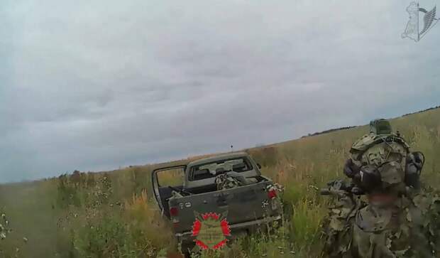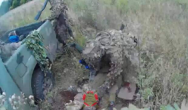 В ролике выдвижение, обнаружение цели, проведение засады на пикап и досмотр забитой жертвы. В результате засады были ликвидированы четверо военнослужащих одного из подразделений ВСУ.