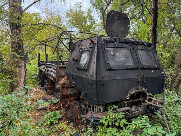 Уничтоженный американский бронированный армейский грузовик Oshkosh FMTV в Курском приграничье.https://t.me/Ugolok_Sitha/27161