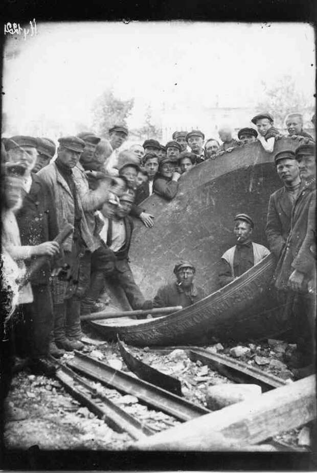 Колокол, сброшенный с колокольни Успенского собора. ГКУ ЯО ГАЯО. Хранилище АВД. Н 4 — 1221.Это не спасло собор от разрушения: в 1937 году его взорвали вместе с колокольней.