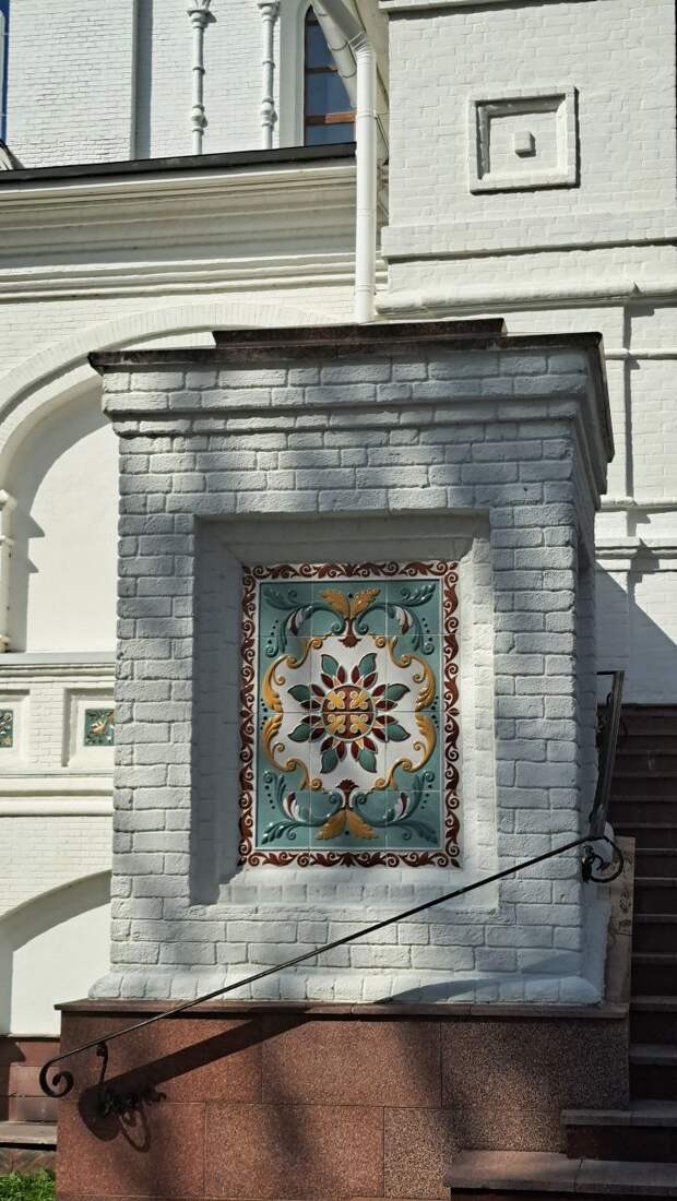 Но самое примечательное в Богоявленском храме − конечно же отделка. Больше всего выделяются полихромные изразцы, украсившие стены храма. Рисунки на изразцовых плитках – это растительный орнамент двух видов: повторяющийся − для карнизов, лент и прочих продолжительных цветных композиций, − и центрический, на изразцах, расположенных по отдельности.