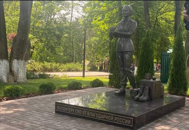 Лицом памятника стала Ксения, девушка-волонтер из Ростова, которая помогает в госпиталях.https://t.me/HealerTacMed/17459