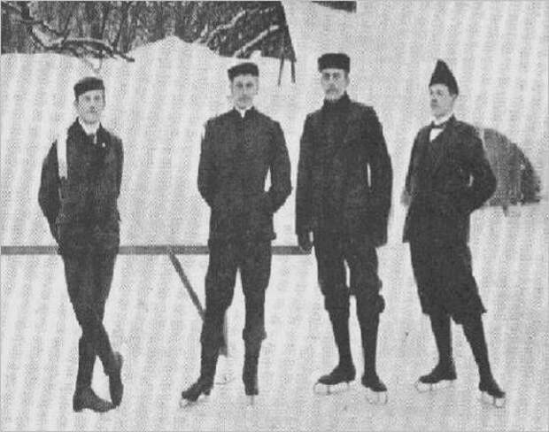 21 февраля 1869 года на катке Юсуповского сада состоялся первый чемпионат мира по катанию на коньках. Участников было всего четверо (на первом фото): австриец Густав Хюгель, немец Гильберт Фукс и двое наших - Георгий Сандерс и Николай Подусков.
