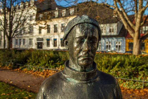 На набережной можно увидеть фигуру человека в берете, который стоит, спрятав руки в карманы, и плачет. Если вы подойдете ближе к фигуре, то увидите, что по его щекам текут настоящие слезы. Эта скульптура-фонтан была создана по эскизам художника и режиссера Мари-Луизы Экман (Marie-Louise Ekman) и называется Det Svenska Tungsinnet. Моделью для скульптуры стал шведский актер Йеста Экман (Gösta Ekman), муж Марии-Луизы.