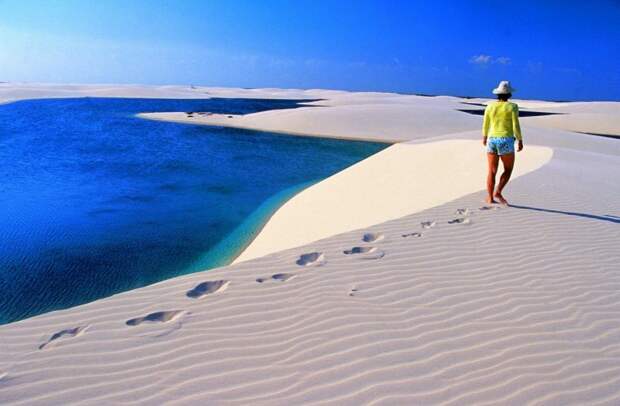 Оптимальное время посещения этих мест в отличии от Пантанала, это как раз и есть сезон дождей с Мая по Сентябрь,когда солнце ,которое как известно в районе экватора светит практически одинаково еще не успело осушить эти озера,..в этот период в них еще можно купатся и даже ловить рыбу, а уже в сухой сезон, когда лагуны высыхают под палящим солнцем при t 45C , или стираются вновь прибывшими дюнами,..эта местность больше напоминает пустыню Сахару-оправдывая свое негласное название “Бразильская Сахара”.