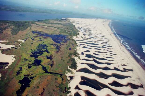 Для многих россиян будет удивительно — здесь чисто, нет ни одной пластиковой бутылки, ни одной бутылки с под пива или водки, ни одной обёртки с под чего-либо. Во многом парк Ленсойс Мараньенсес похож на пустыню, однако здесь выпадает более чем в 300 раз больше осадков, чем в той-же Сахаре. В сезон дождей вода собирается между барханами и появляются озера с чистейшей сине-зеленой водой.Есть здесь и растительность. Когда влаги достаточно здесь буквально оживают мангровые заросли высотой до 12 метров. Эти заросли являются пристанищем гигантских крабов, золотых зайцев, кайманов и оленей.