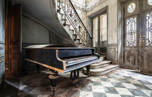 Заброшенный французский замок 18 века.Сам Роман родился во Франции в 1988 году. Он учился играть на пианино, а десять лет назад увлёкся фотографией. Теперь это его жизнь. Но музыка так и осталась его страстью. Роман полагает, что пианино настолько глубоко пустило корни в нашу культуру, что невозможно представить музыку без этого инструмента.
