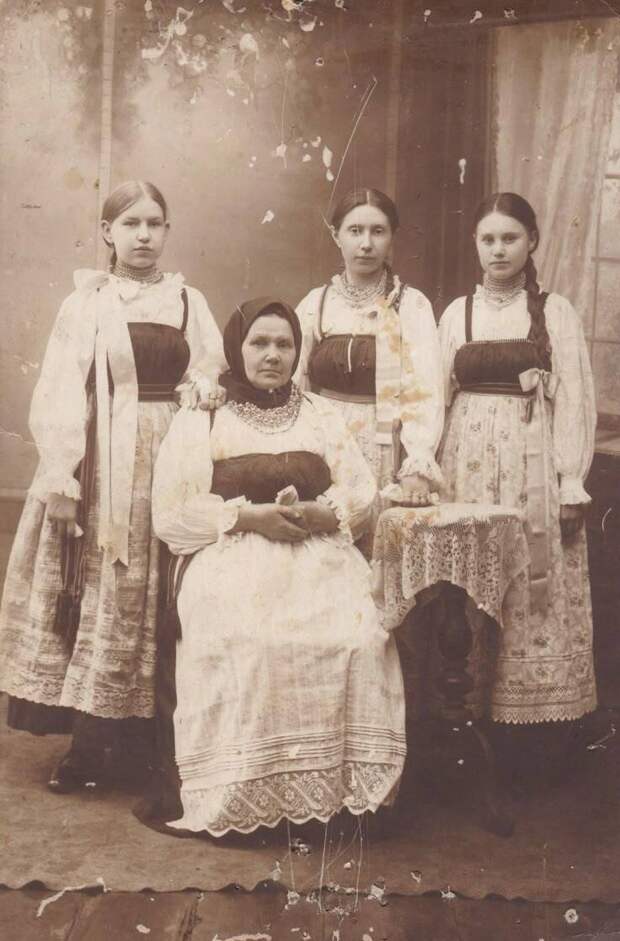 Группа девушек в праздничных нарядах. Тульская губерния, 1902 г.