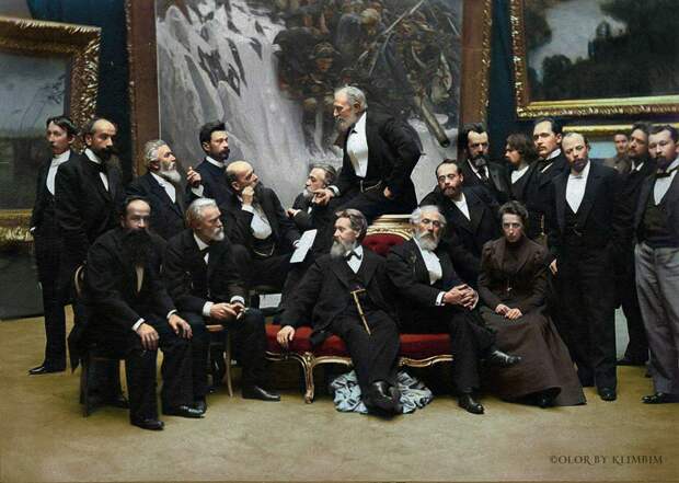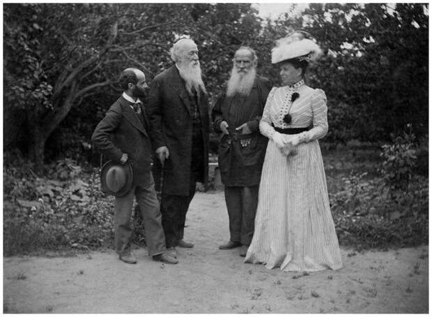 Лев Николаевич и Софья Андреевна Толстые, Владимир Стасов и Илья Гинцбург. 1900 год