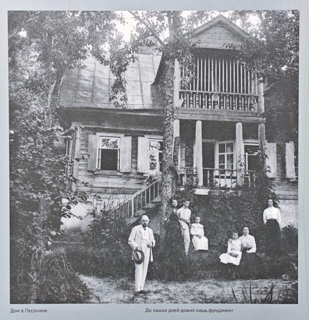 Семья Цветаевых у своего дома в Песочном. Таруса, Тарусский уезд, Калужская область. В советское время дом был снесен, сохранился только фундамент.