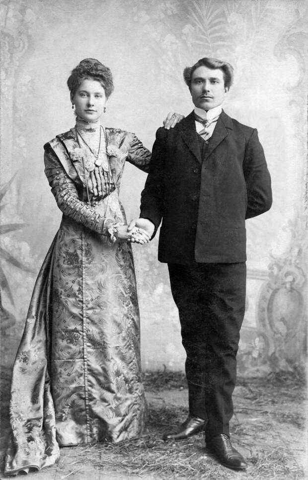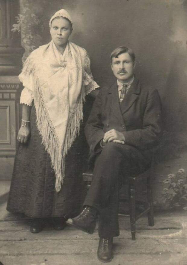 Свадебная фотография крестьян Дмитрия Шаршукова и Марии Шапочкиной. Село Ижевское, 10 (23) февраля 1910 года.
