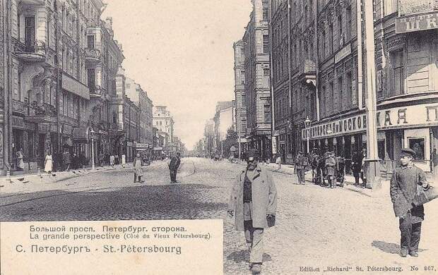 Большой проспект Петроградской стороны. Вид от Церковной улицы (ныне - улица Блохина). Санкт-Петербург. 1903 год