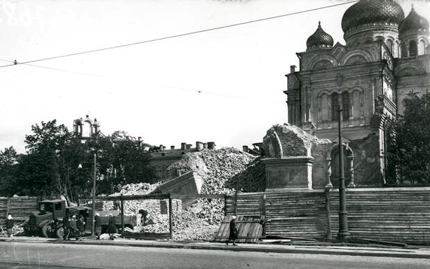Разборка колокольни Новодевичьего Монастыря во времена Советской Власти. Фото ЦГАКФФД 1933 г